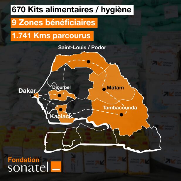 La Fondation Sonatel, aux côtés de la Direction Générale de l’Administration Territoriale (DGAT), a mené une tournée solidaire à Diourbel / Touba, Saint-Louis / Podor, Matam, Tambacounda / Bakel, Kaolack et dans la Banlieue de Dakar, afin de soutenir les populations touchées par les inondations et les crues.